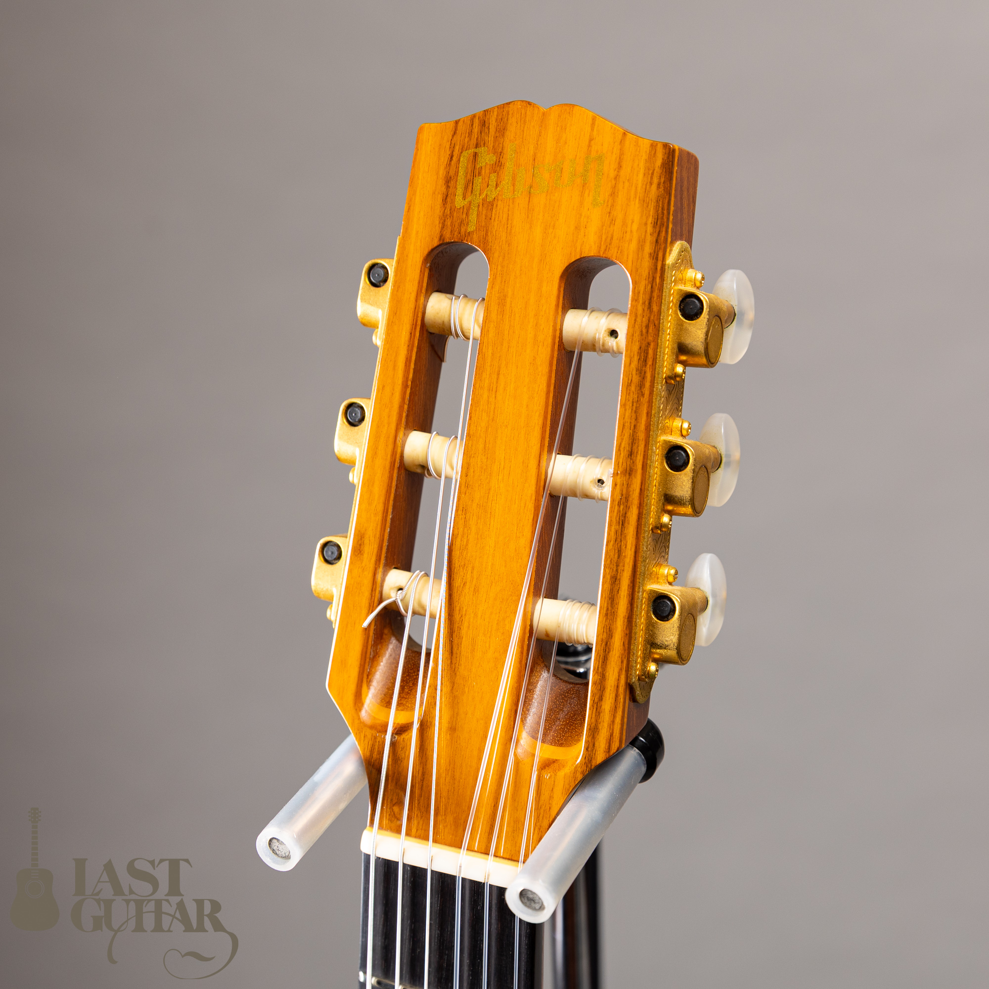 本機は、Gibsonロゴがあるヘッド、少しシャープなヘッドストック、エボニー指板、Volume、Treble、Bassコントロール仕様の所謂後期型です。経年で色づいたトップのスプルースが良い表情をしております。ナット幅は、約46ミリのナロータイプですので普段アコギやエレキを弾かれている方には馴染やすく、ハウリングに強いソリッド・チャンバー・ボディ、カッタウェイ仕様でステージパーフォーマンスに優れており、バンド等でナイロン弦サウンドを必要とされる方にベストマッチです。