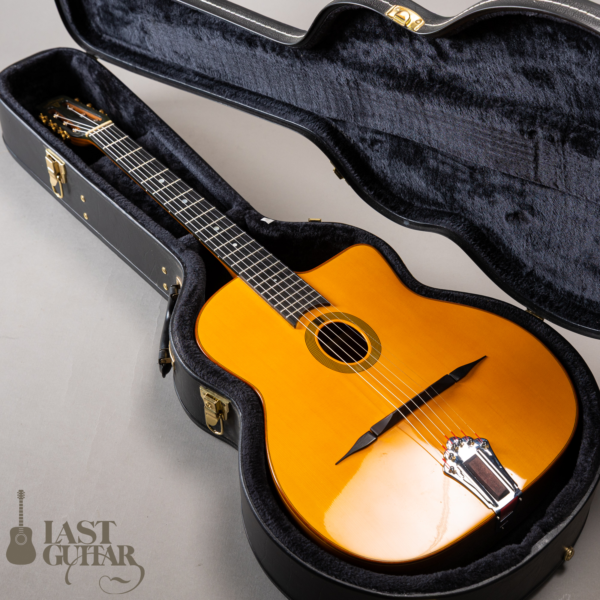 イタリアからフランスに渡ったギタールシアー、ジャン・P・カステルチアによって1946年に創設されスタートしたカステルチア工房、現在もフランスのパリに工房を構え、その伝統を引き継いだ3代目によってセルマー/マカフェリギターレプリカやクラシックギターが生み出されております。カステルチアのセルマータイプは、日本にも入荷はしておりましたが数は少なかったと記憶しておりますので希少なアイテムと思います。