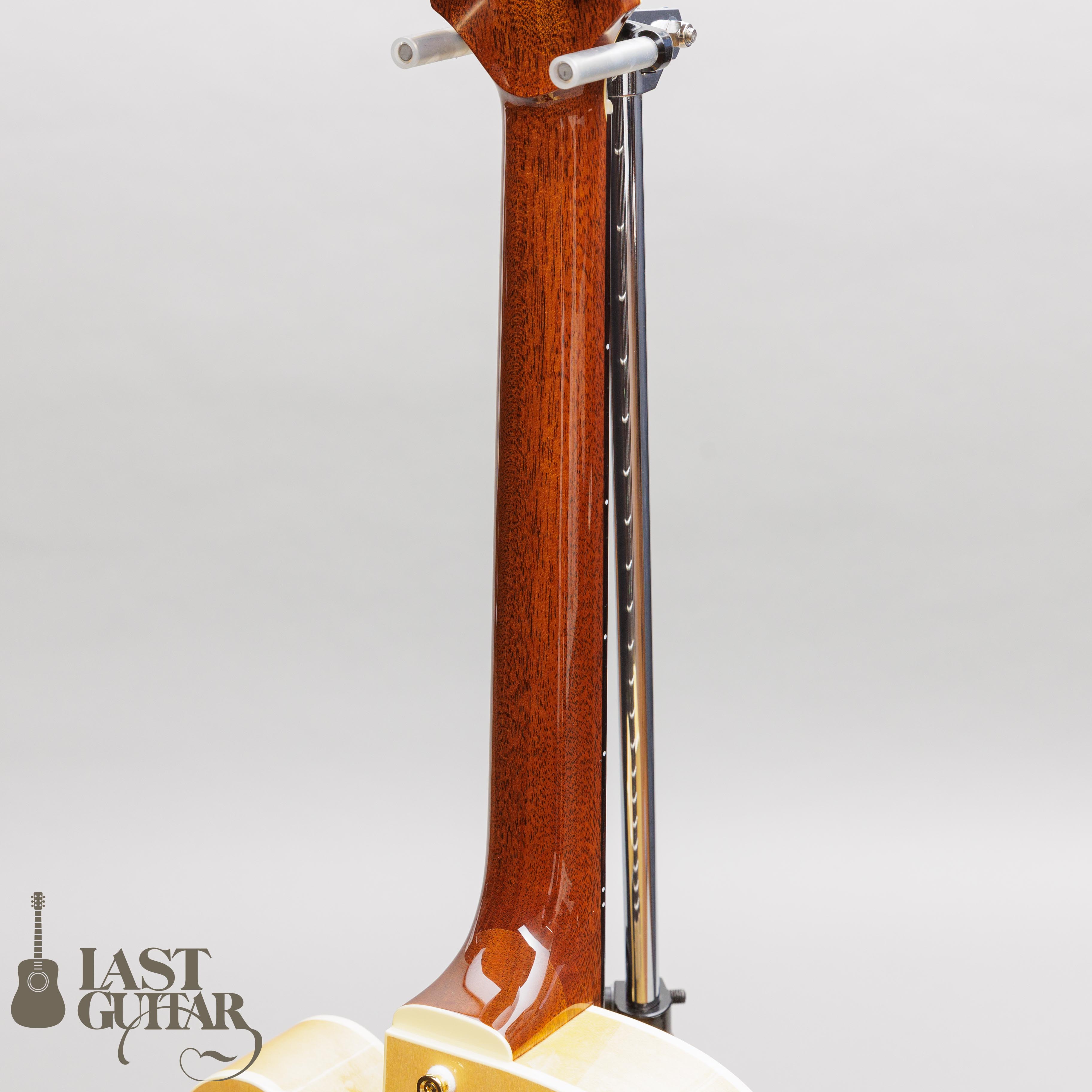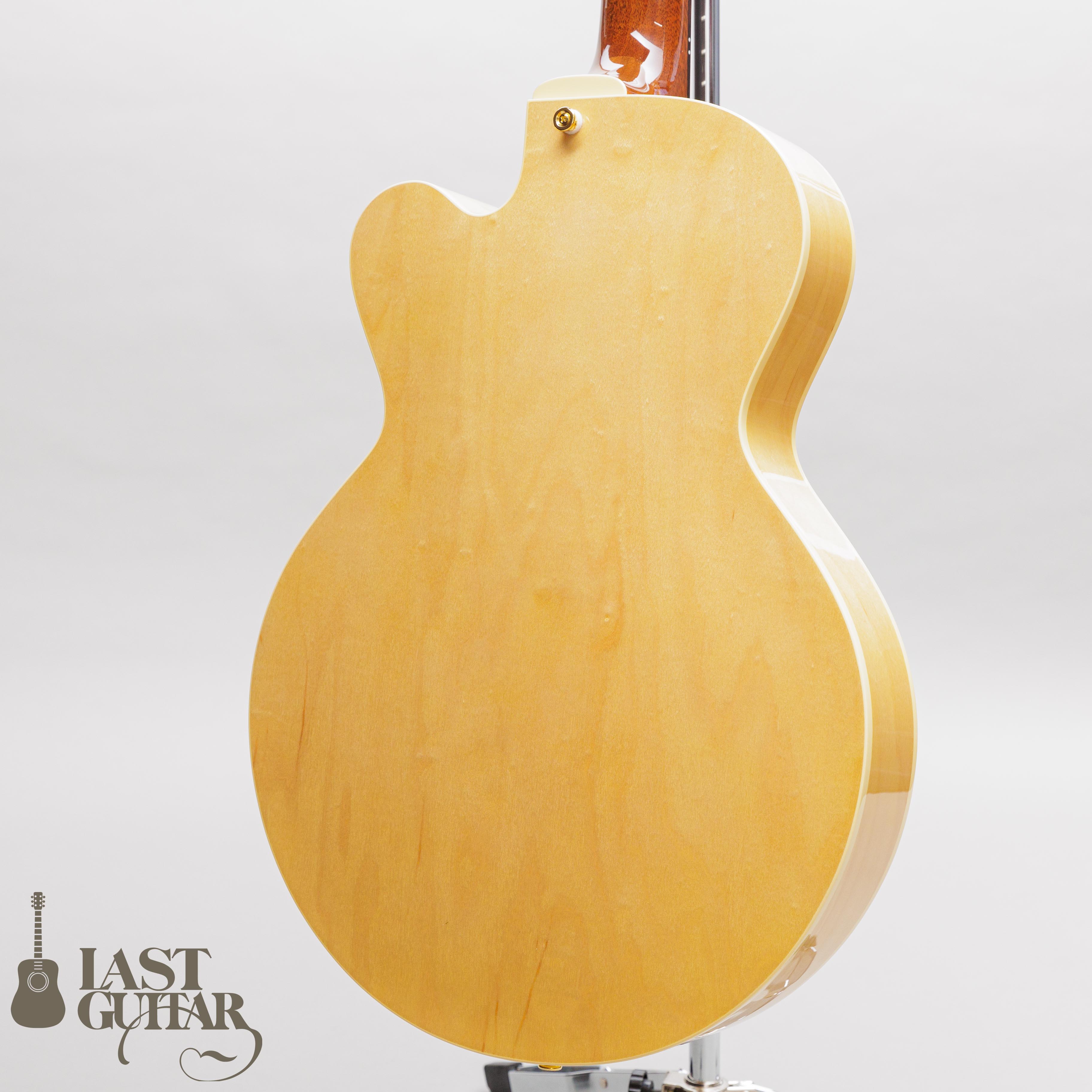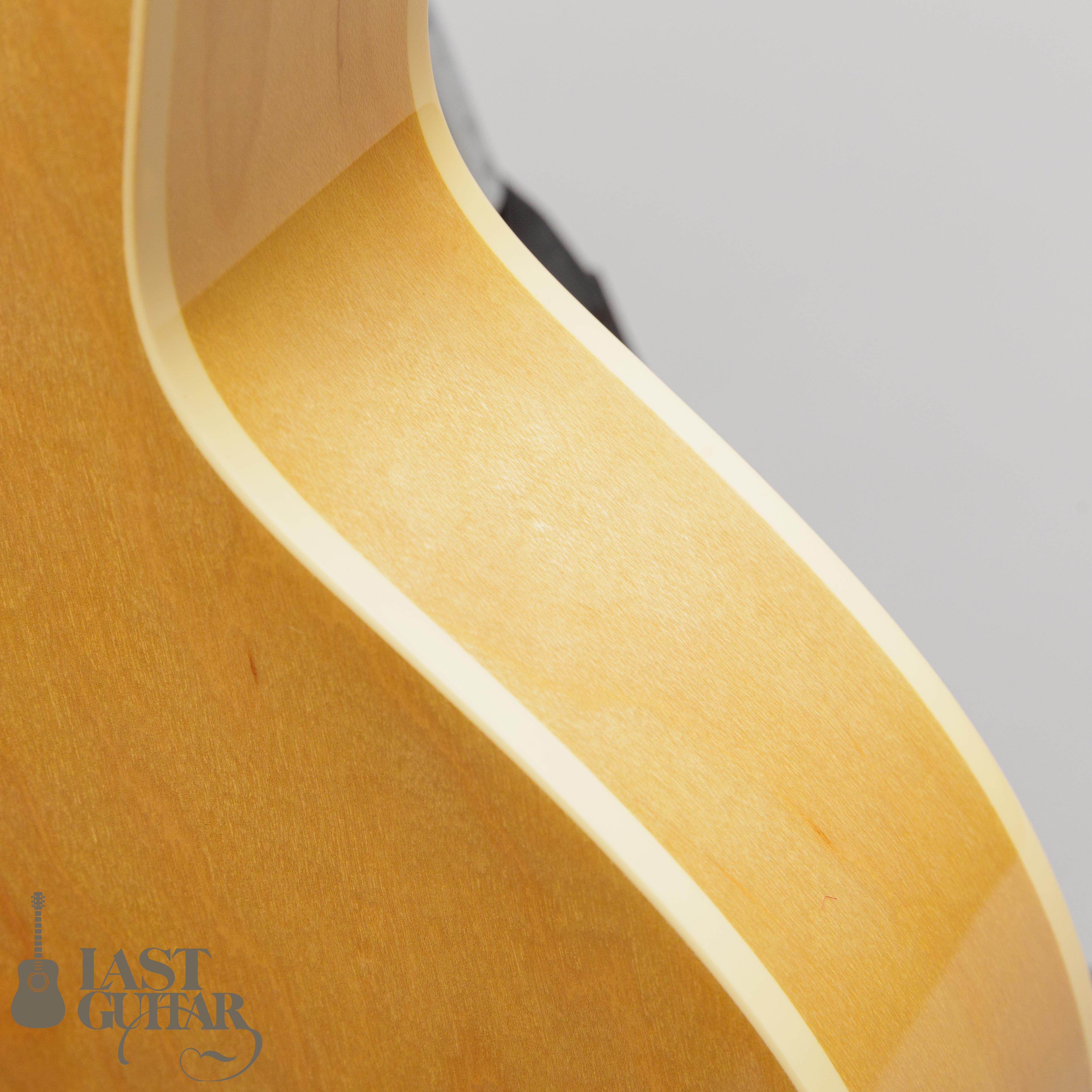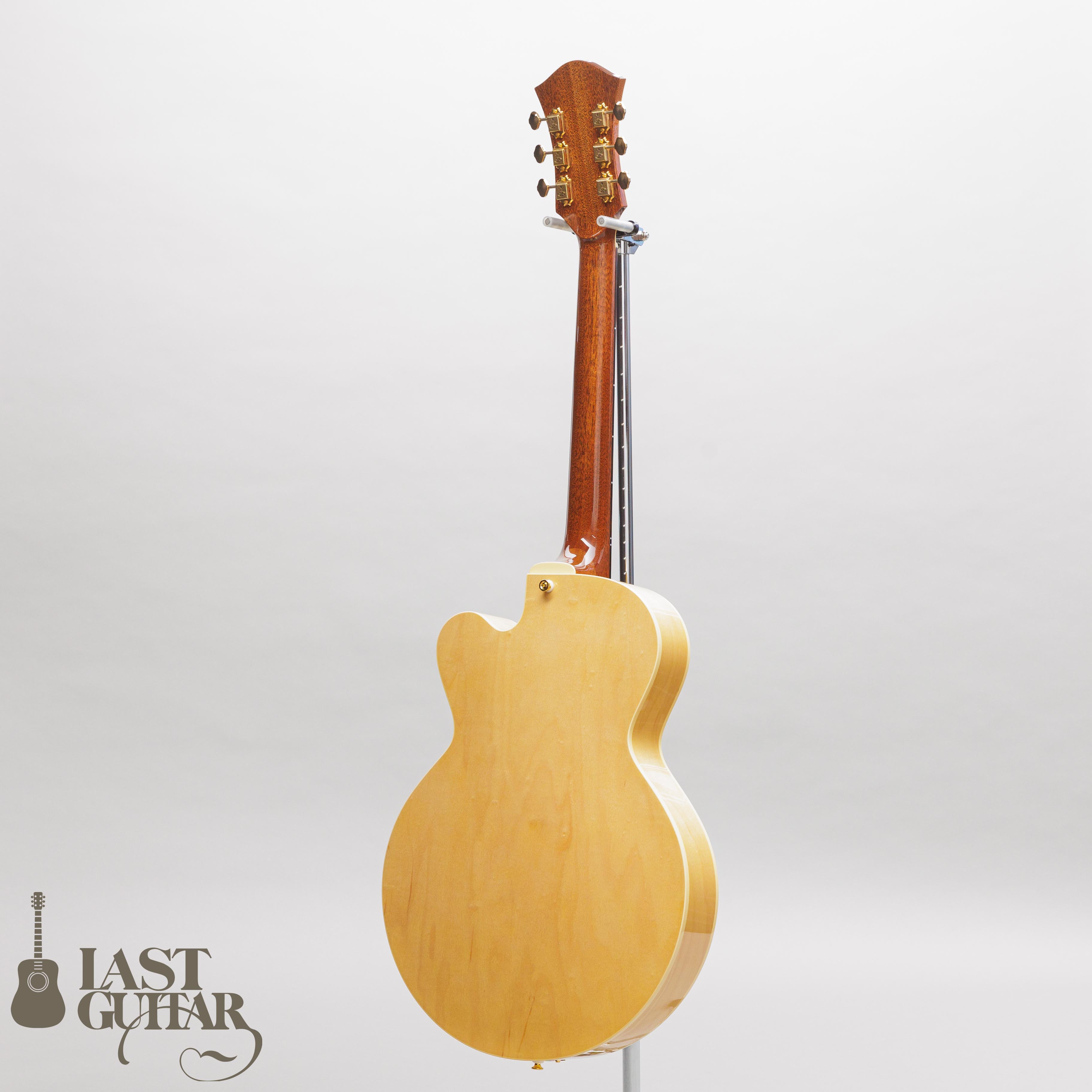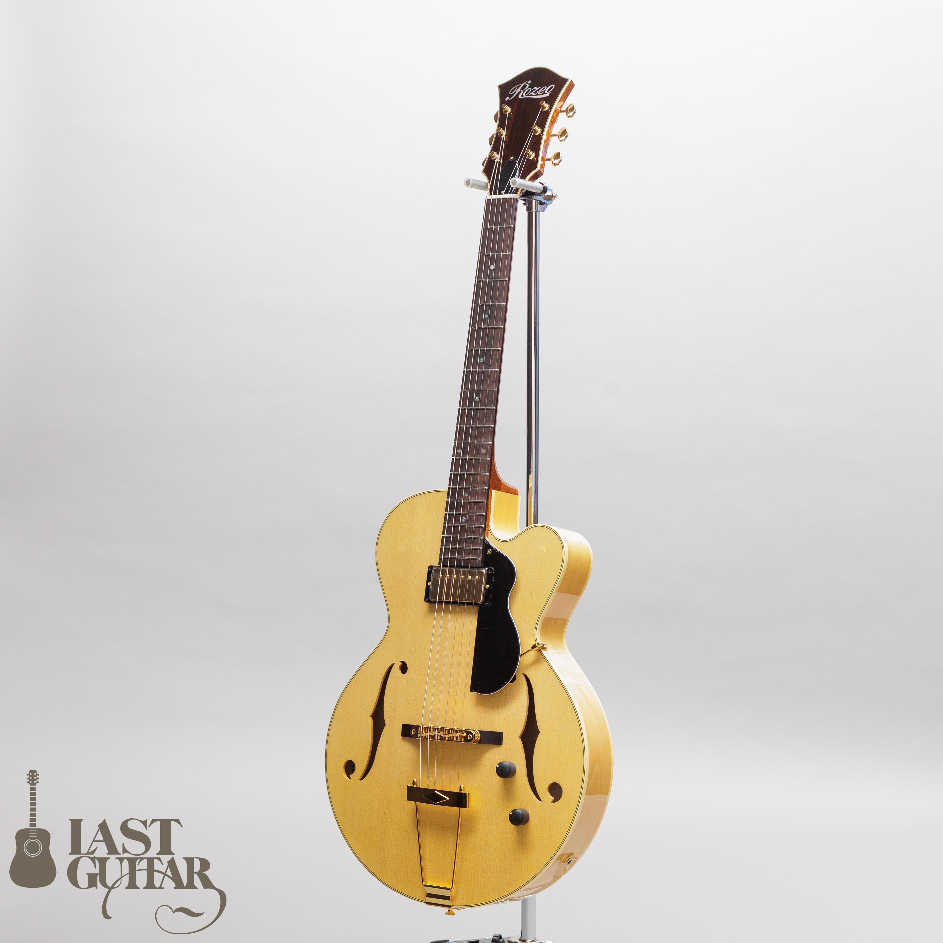 本機は、レギュラーライン、フルアコースティックタイプ、胴厚(70ミリ)、シングルカッタウェイ、ハムバッカータイプのピックアップを1基マウントしたナチュラルカラーモデルで、シンプルでカッコいいです。
