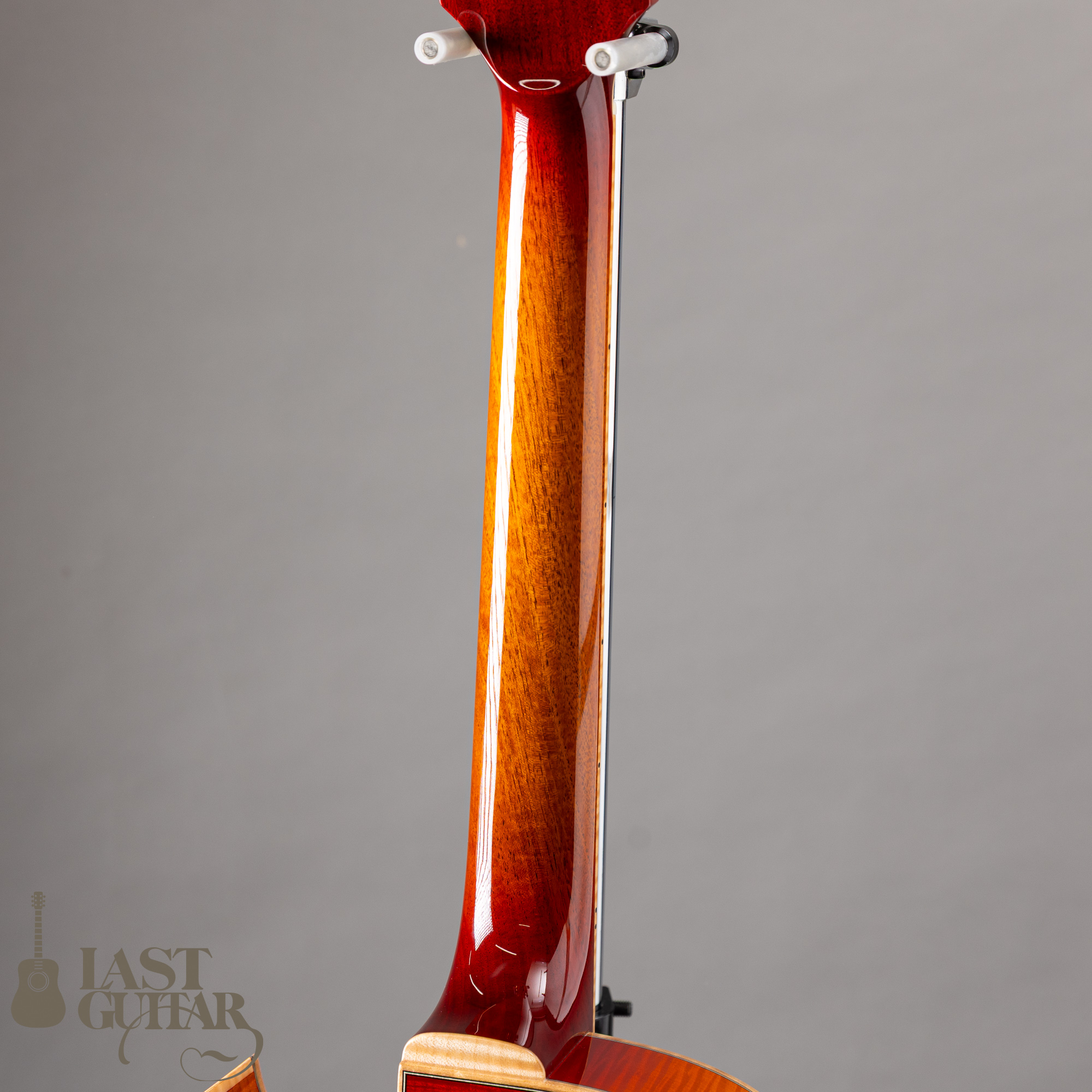 ウッドマテリアルは、デッドストックのフレイムメイプルボディに、良質なホンジュラスマホガニーネック、エボニーフィンガーボードです。胴厚は、ロゼオ通常の70ミリです。ネックまわりは、43mmナット幅に、しっかりとしたラウンドグリップですごく握った感触が良いです。フィニッシュは、下地からラッカーのフルラッカー仕上げでよりダイレクトに振動を伝達してくれてアンプラグドでも豊かな響きです。ペグは、ギア比の高い人気のゴトー510シリーズを搭載しており、高い精度でストレスを感じません。