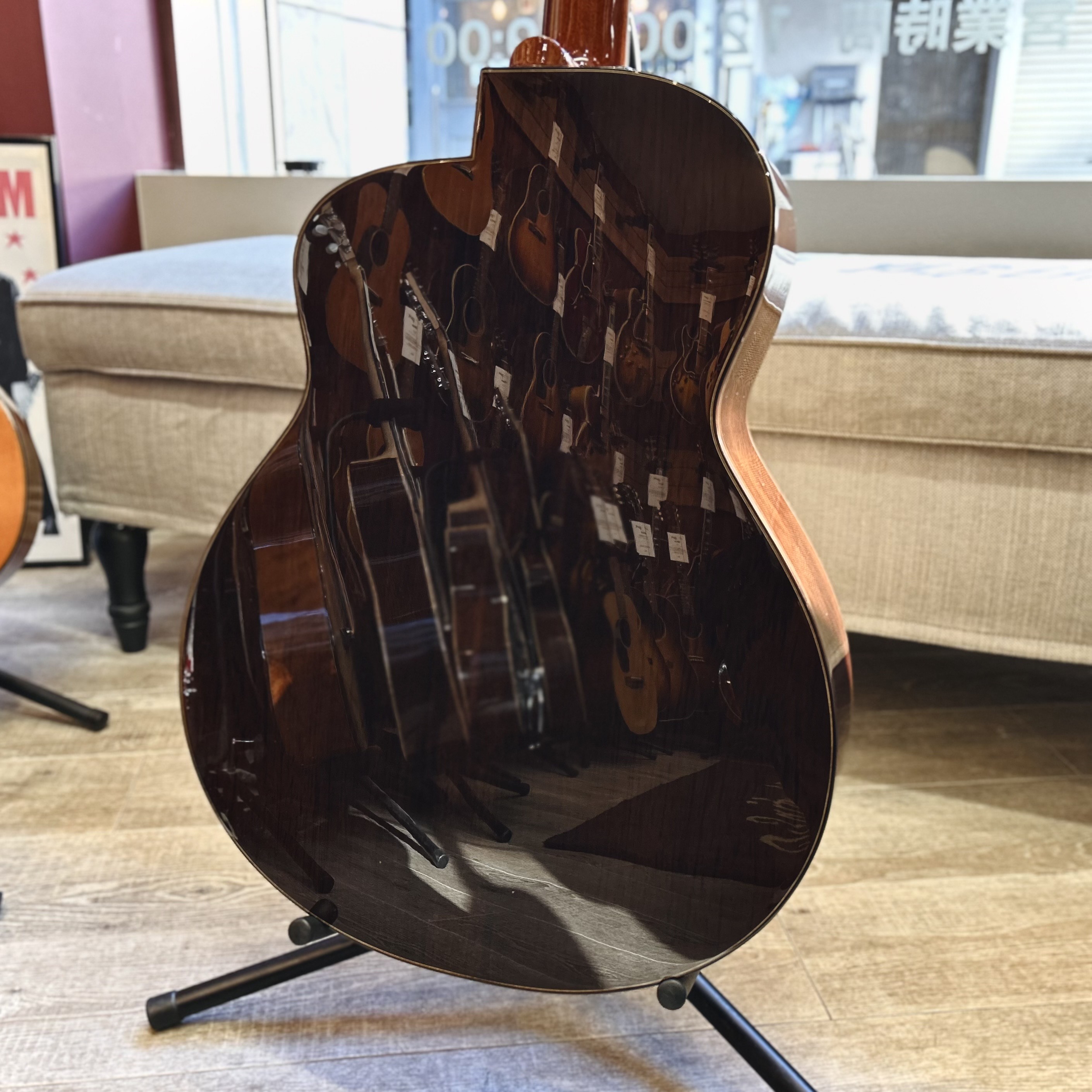 本機は、世界的に人気のギタリスト井草聖二さんのシグネチャーモデルです。ご本人が使用されているものと同仕様で、ピックアップは搭載されていないモデルとなります。井草さんこだわりの装飾があしらわれておりシンプルながら個性あるルックスです。監修は、日本を代表するルシアー杉田健司氏が行っており、ブレイシングパターン、ネックジョイントなどサウンドに影響する重要な部分は杉田氏により設計されております。