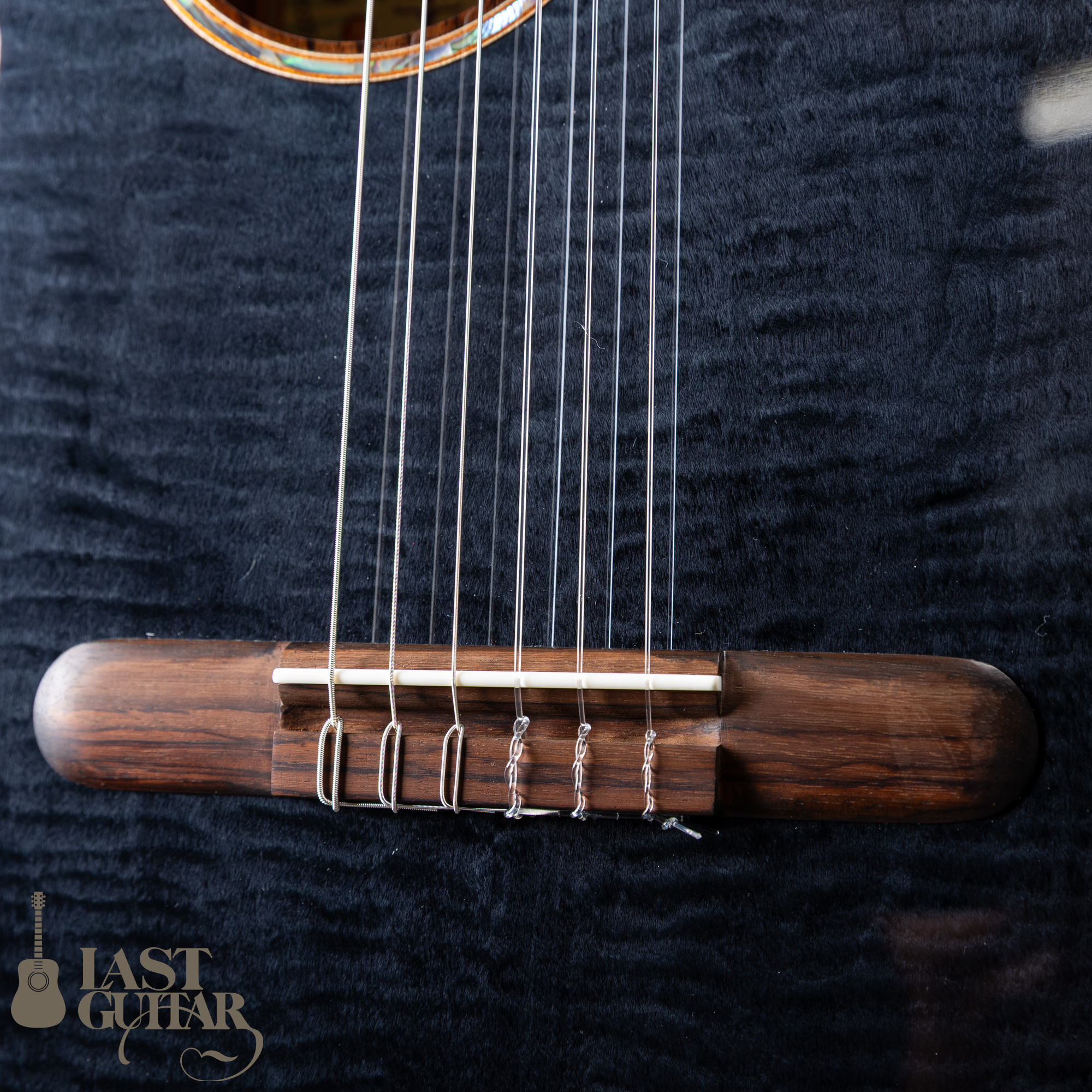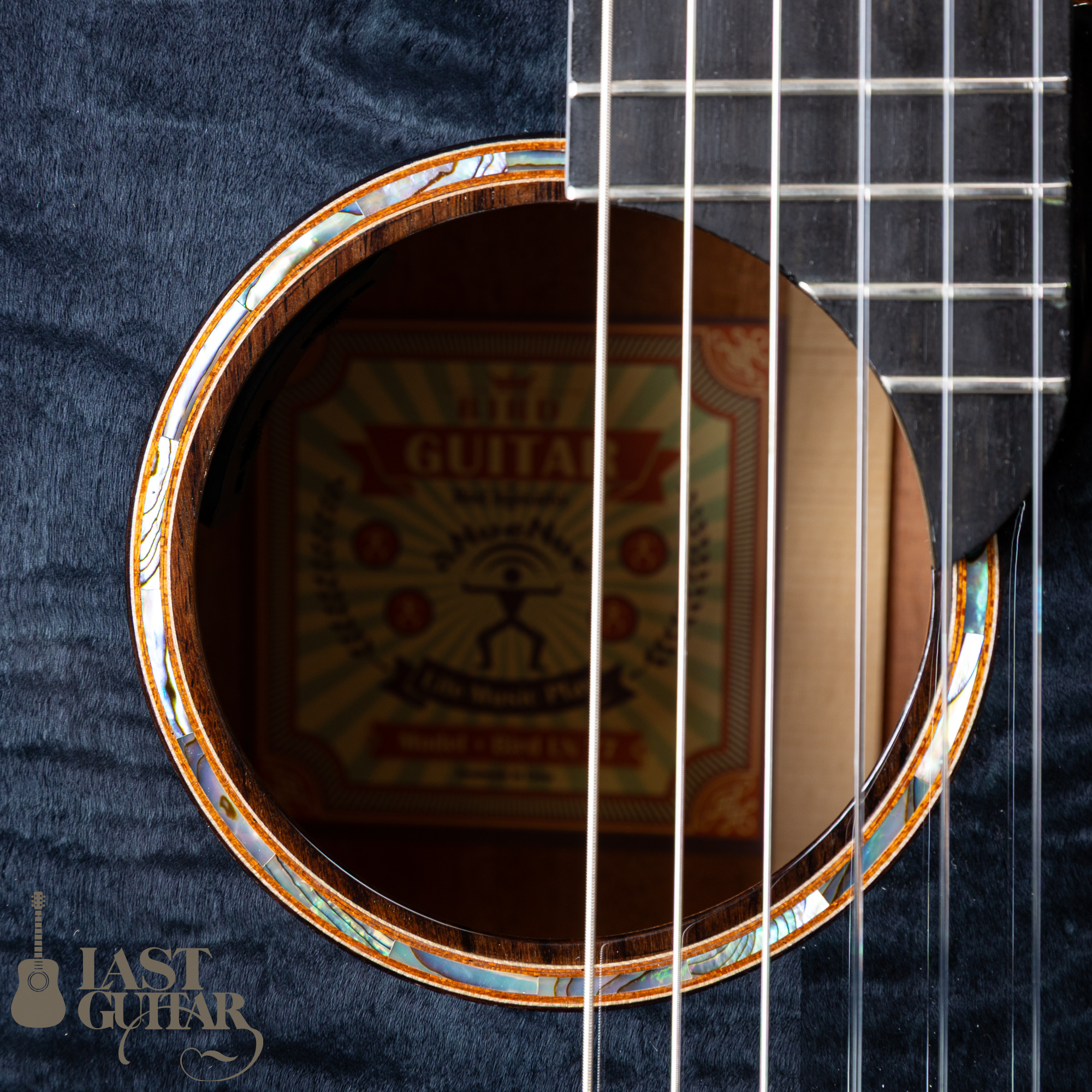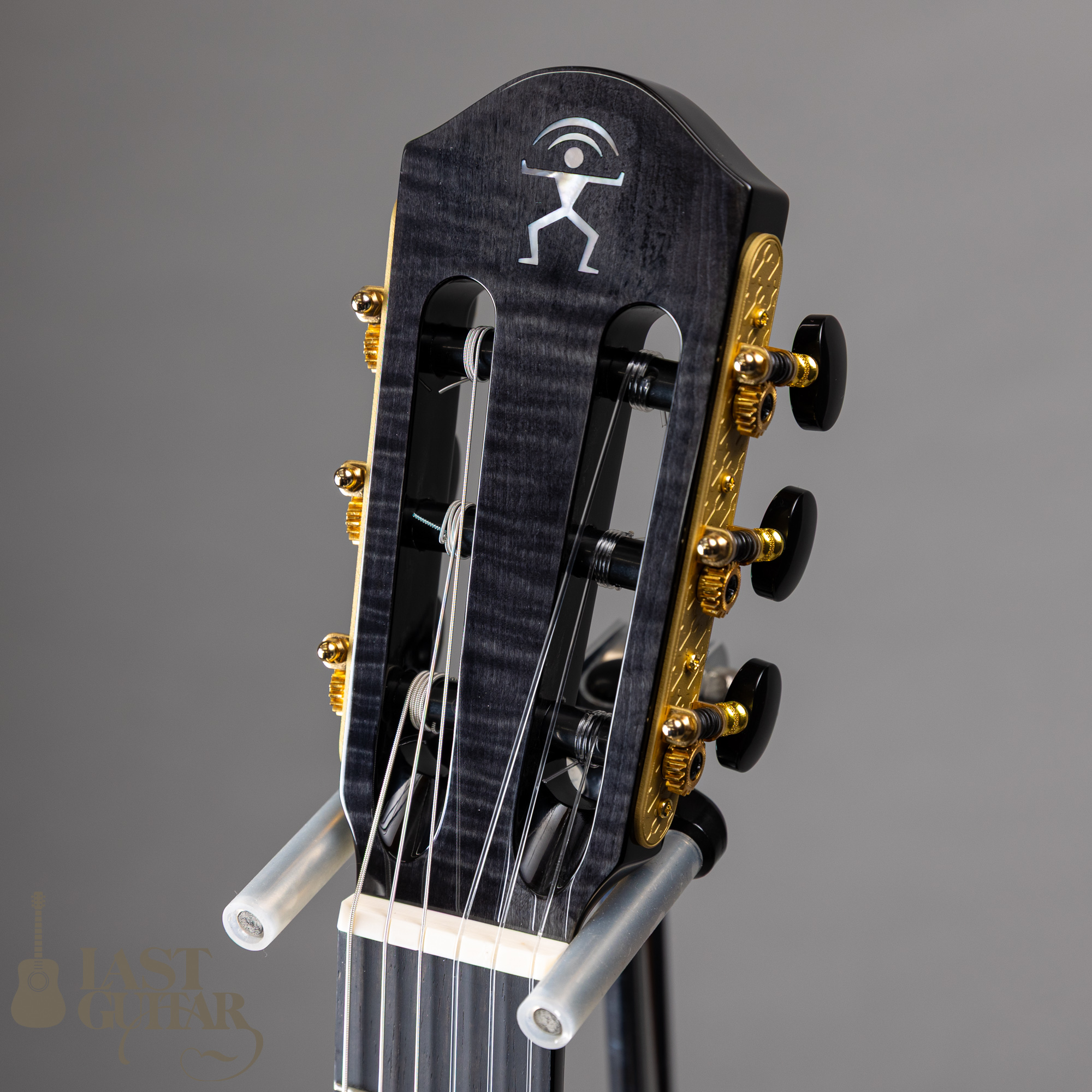 カーリーメイプルをシダー材の表面に使用、シースルーブラックカラーとの組み合わせでステージ映えする美しいルックスに仕上がっています。サイドとバックには、さりげなくラメが入っているのも良いですね。またウッドバインディングも高級感もあります。
