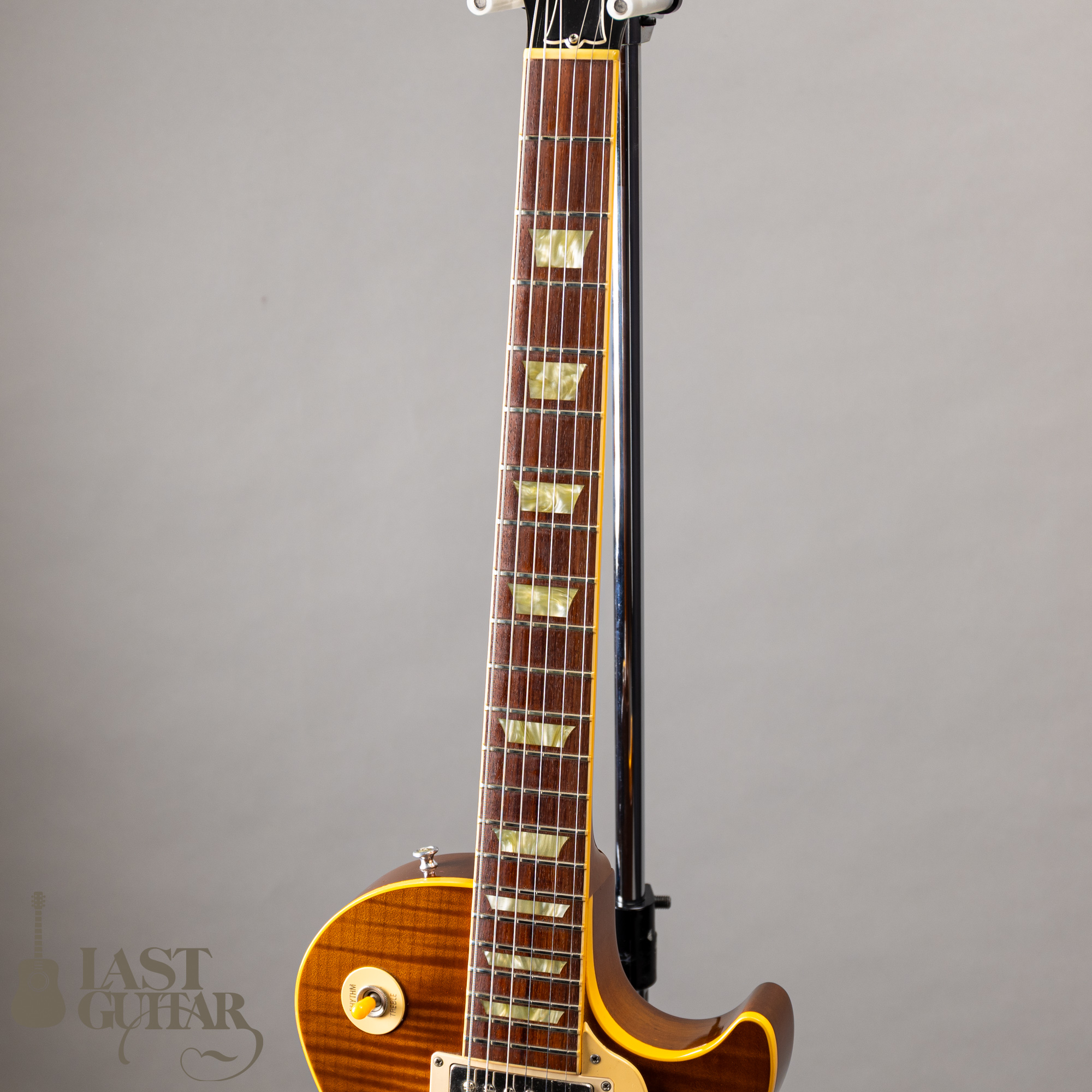 あたたかくファットなフロントサウンド、少しライトめでシャープさがあるリアサウンドと良い音がしています。抜群のルックを持つハイグレードトップのレスポール、この顔にグッとこられた方は、是非、お手に取ってお確かめいただければと思います。