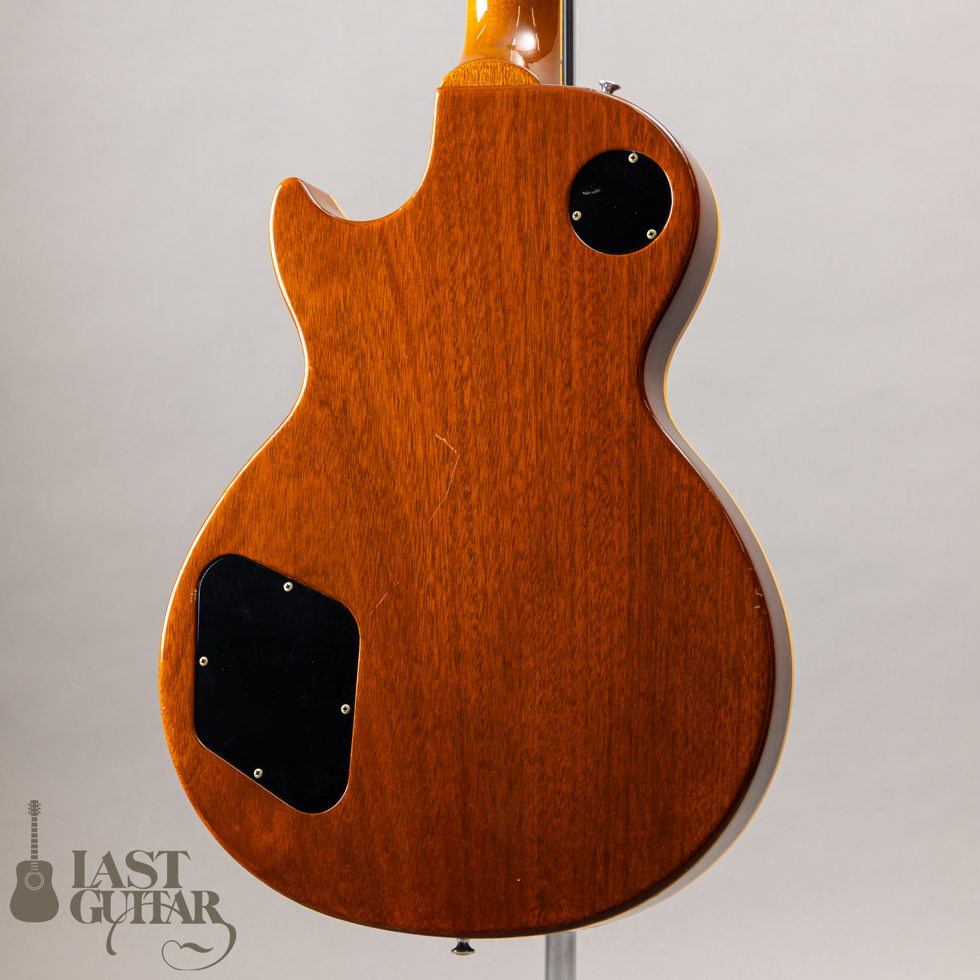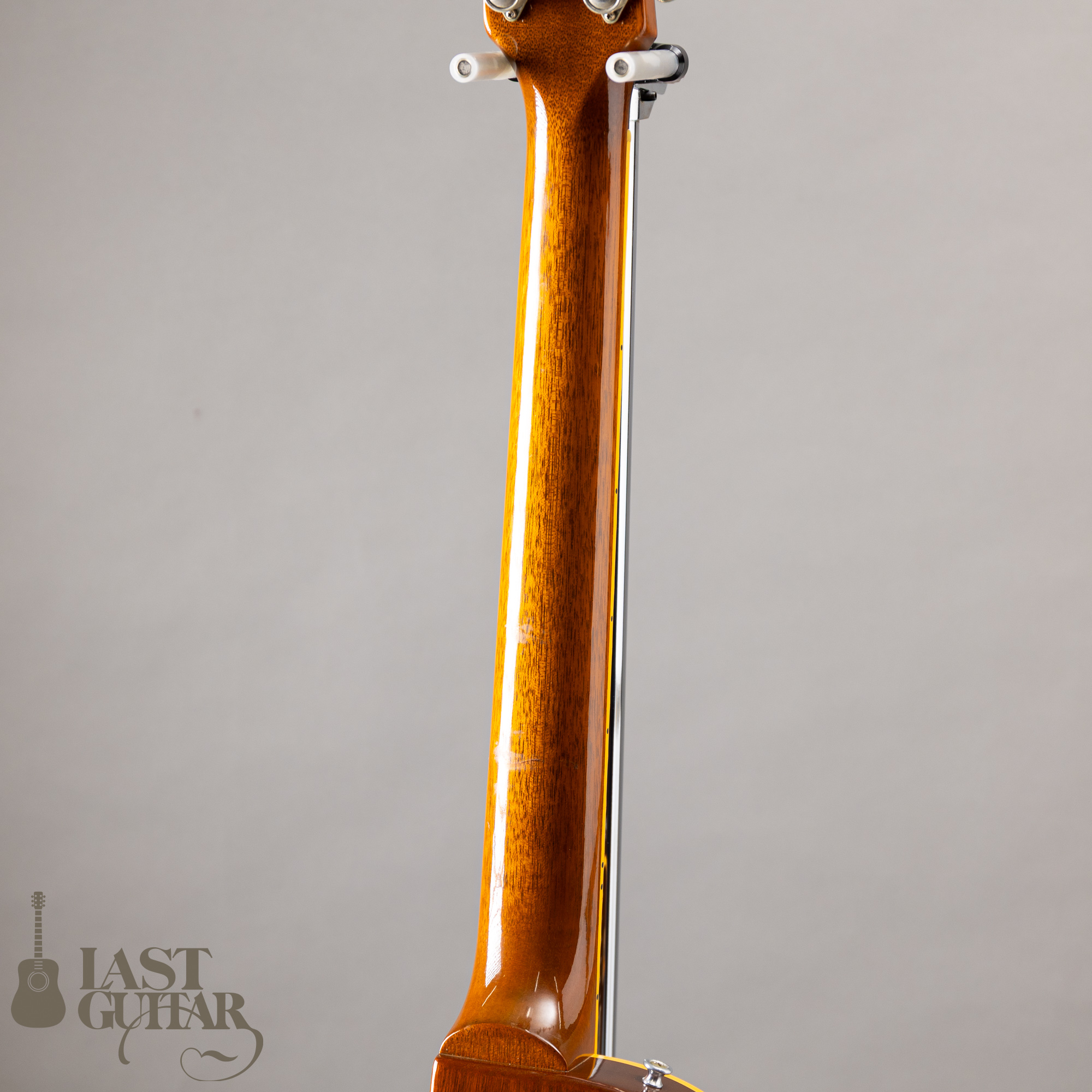 良質な1ピースマホガニーバック、1ピースマホガニーネックに、ローズウッド指板です。ネックはやや薄めの握りやすいグリップシェイプで、比較的どなたにも馴染みやすいと思います。ブリッジは、ABR-1ブリッジです。スケールは、24.75インチ、ナット幅は、1.6875インチ、重量につきましては、4.485kgです。