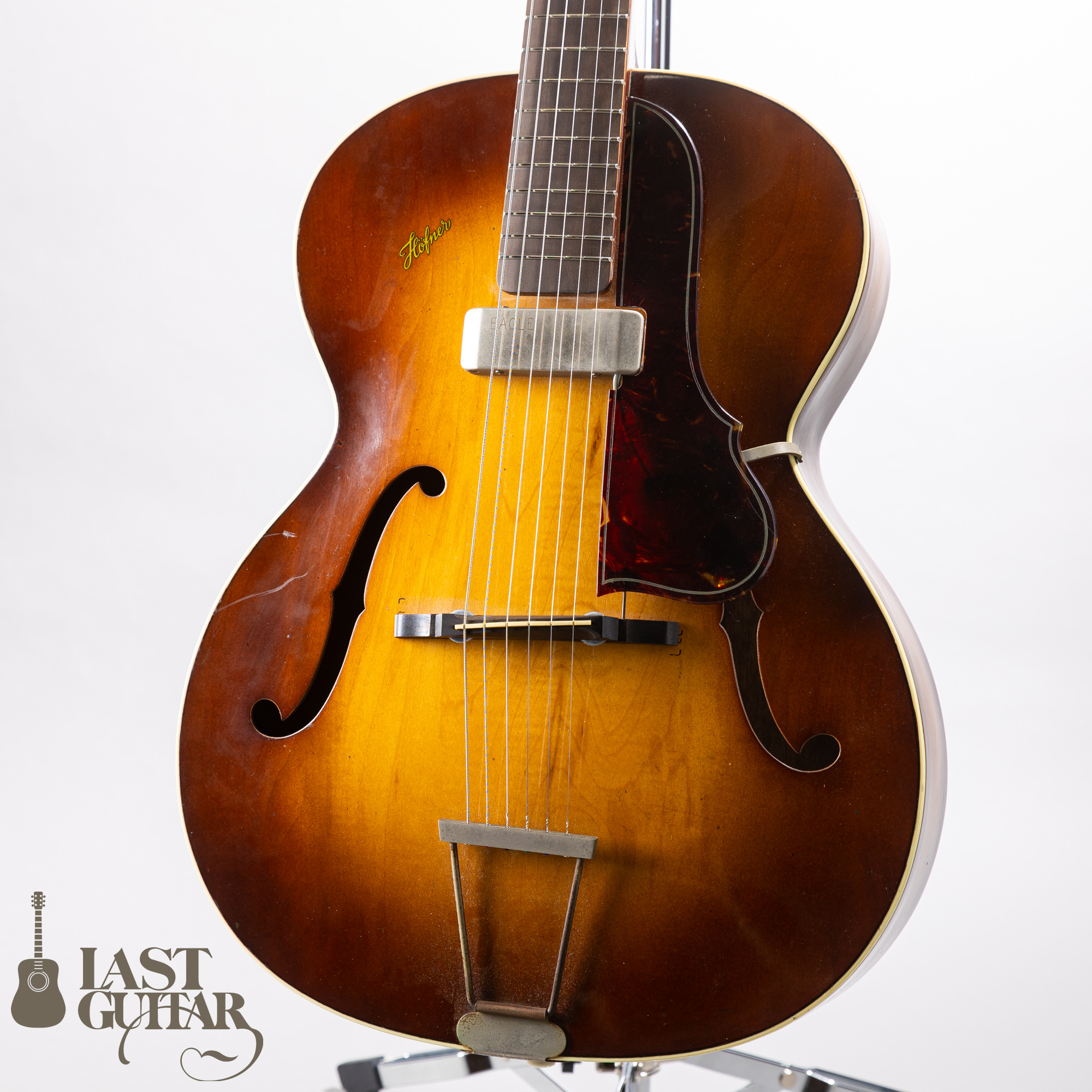 市場でほとんど見かけないレアなドイツ・ヘフナーのヴィンテージピックギターです。ヘッドの装飾、ボディスタイルなどレトロな佇まいでとても味わがあります。ボディトップにあるロゴなんかもいいですね。