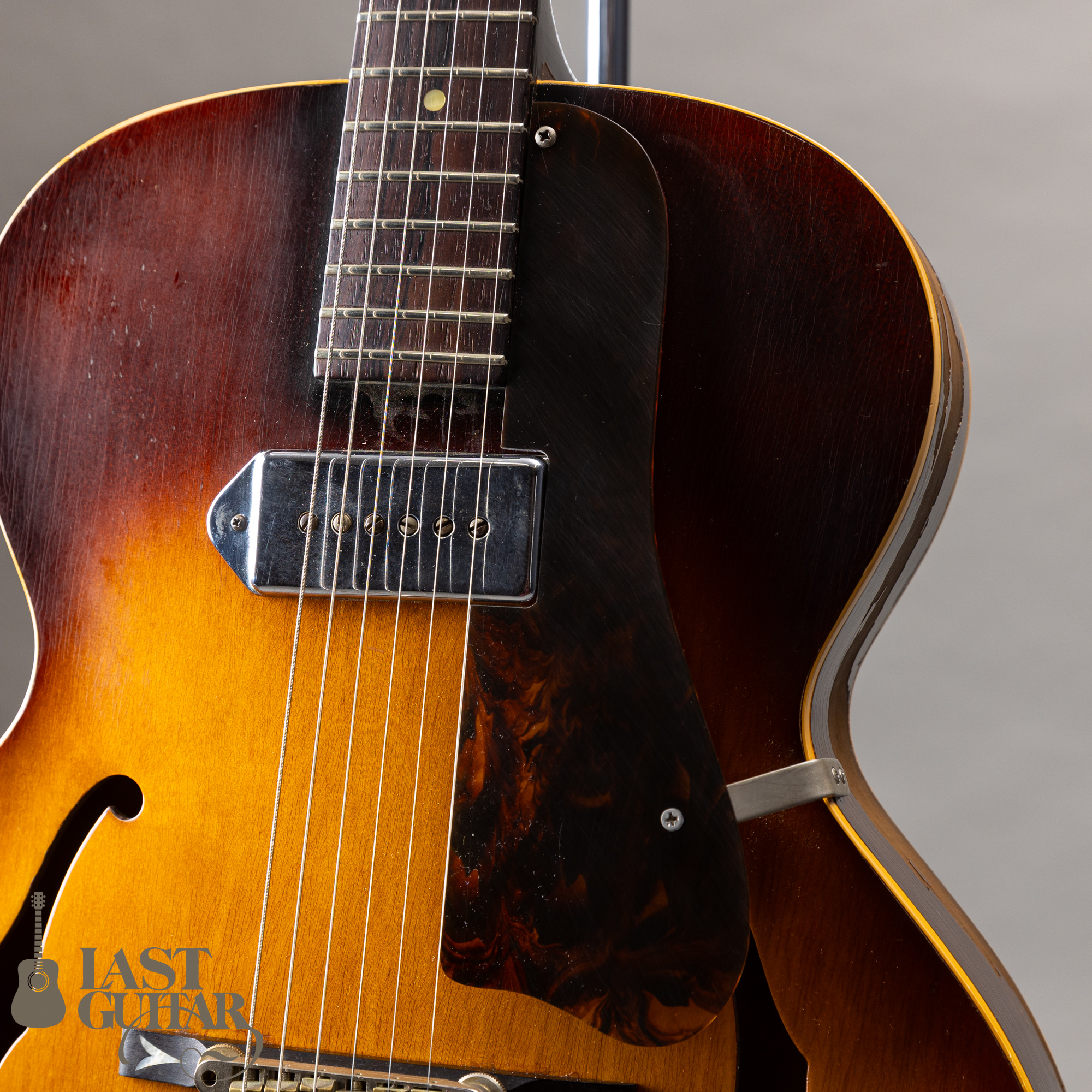 ピックアップは、残念ながら交換されておりますが、後年の古いエピフォンカジノあたりのものと思われるメタルカバーのP-90が現在搭載されており、個体にマッチしたあたたかく古めかしいサウンドといった印象で、馴染んだヴィンテージサウンドを体感いただけると思います。その他に、フレット、ピックガード、ブリッジサドル、ペグ、消耗パーツ、電装系の交換、コントロールノブの欠けがございます。