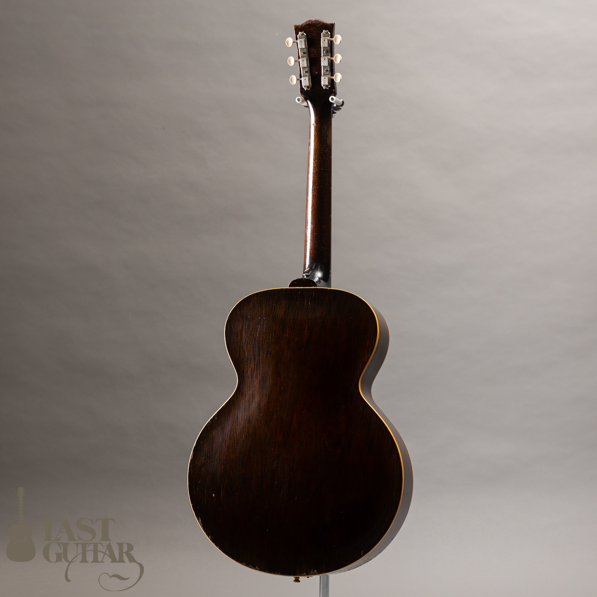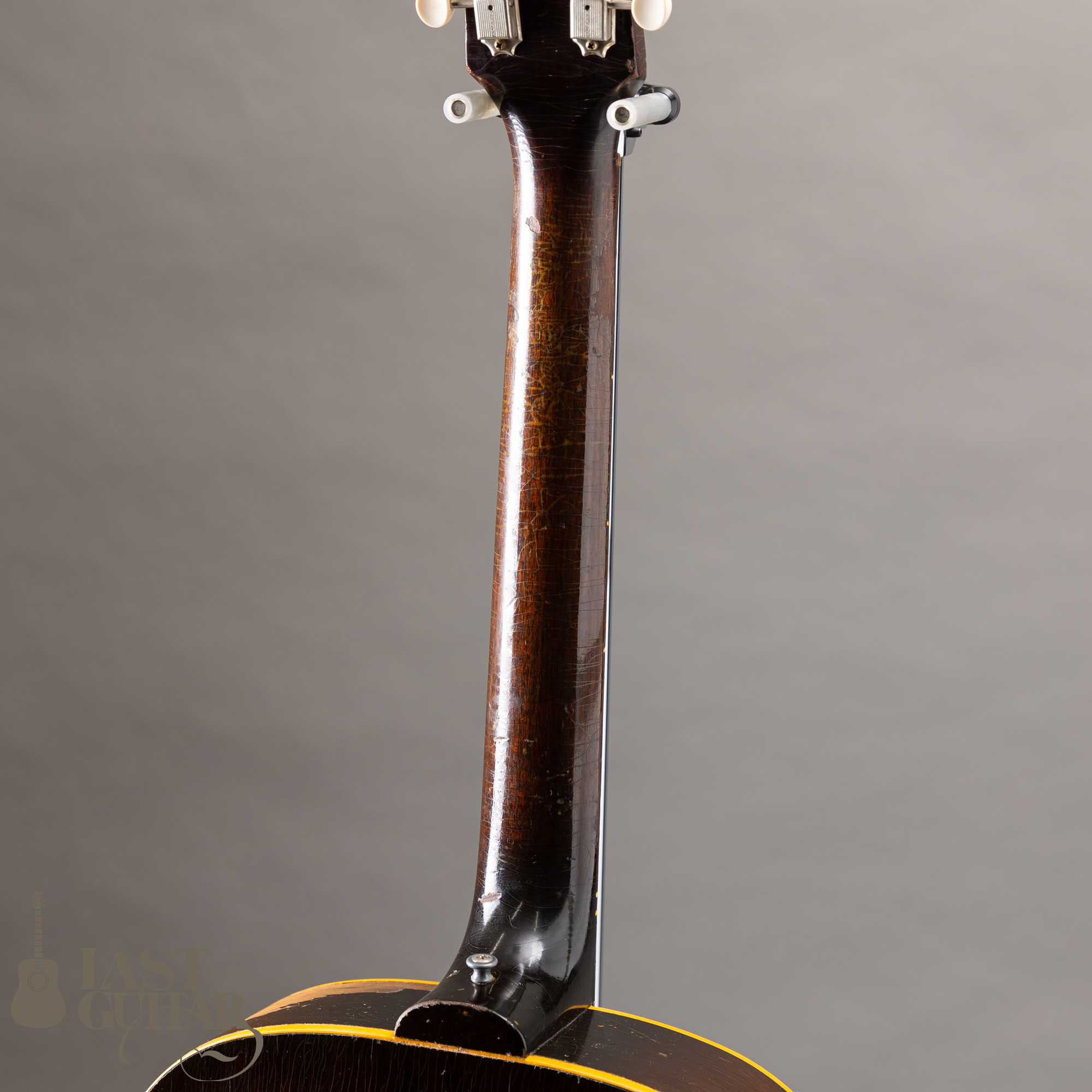 かなりフェイドした色合いが印象的な1950年代のES-125です。潔いノンカッタウェイの16インチワイドボディ、1マイクの仕様で枯れた甘いサウンドが魅力です。ネック折れの修理が施されておりますが、しっかりときれいにリペアされ雰囲気もよく馴染んでおり、問題なく演奏いただける状態です。ボディサイドは、広範囲で塗装が剥がれており、長年使用されてきた歴史が感じられヴィンテージ好きの方には味があって良いのではないでしょうか。