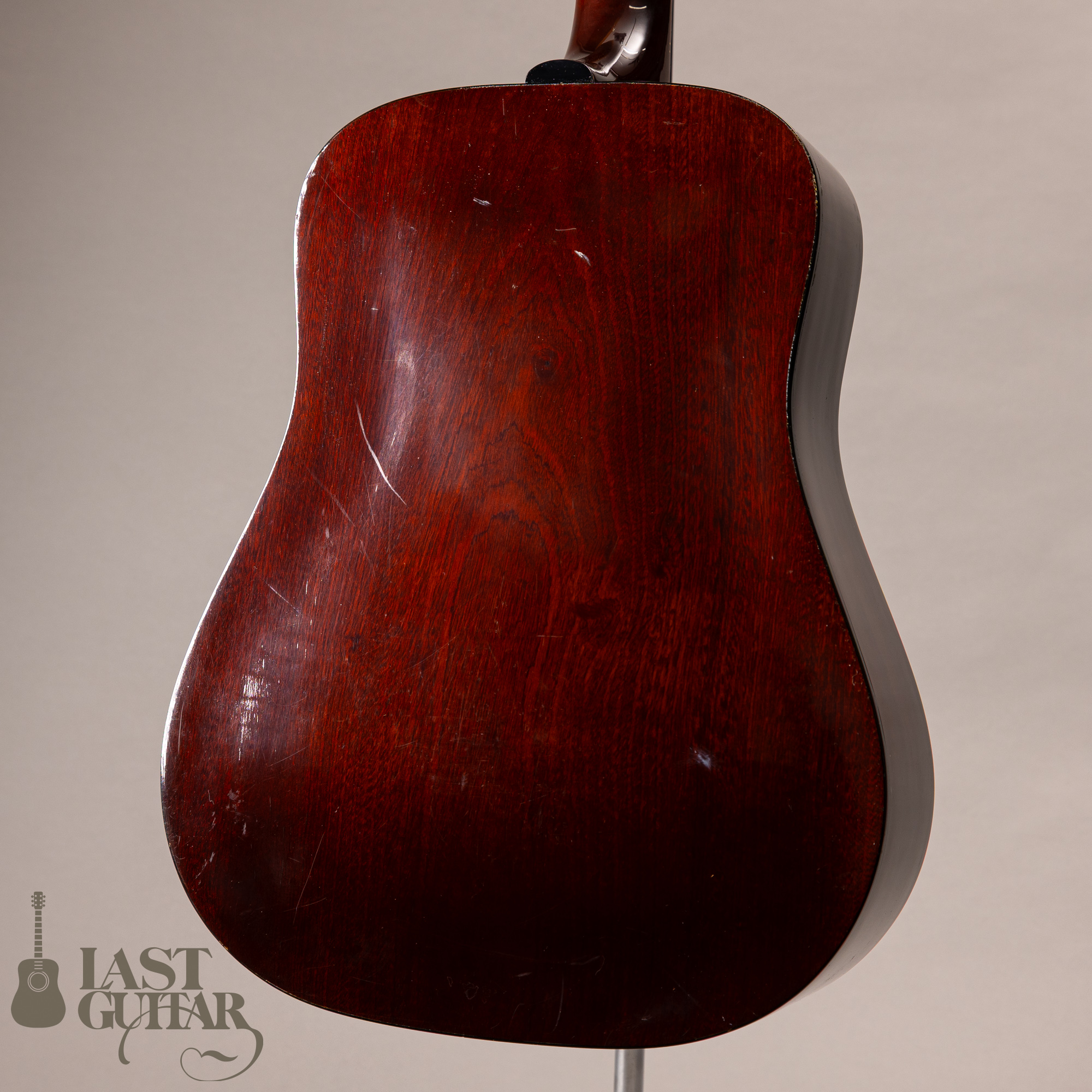 D25は、アーチバックスタイルが特徴で、ヴォリューム感あるサウンドは、大変魅力的です。トップは、ソリッドスプルース、サイドは、ソリッドマホガニーで、バックは、マホガニーです。ネックは、マホガニー、フィンガーボードとブリッジは、ローズウッドです。ネックまわりにつきましては、約46mmナット幅に、程よいグリップ感のラウンドシェイプといった感じです。スケールは、約651ミリです。