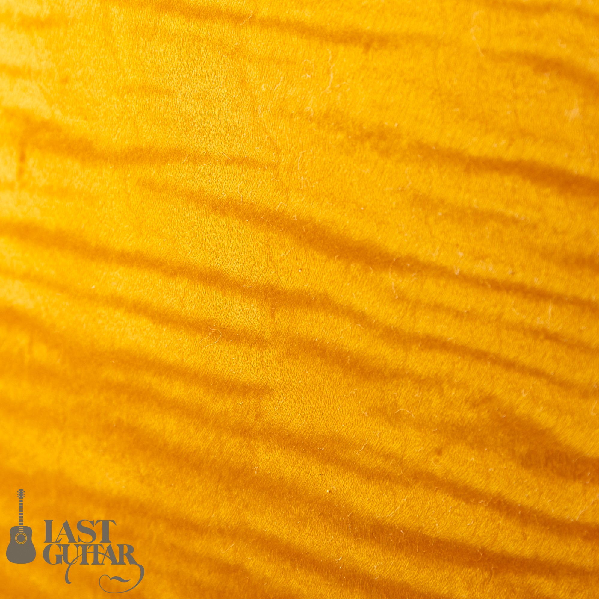 ウッドマテリアルは、雰囲気たっぷりのカーリーメイプルボディに、マホガニーネック、ローズウッドフィンガーボードです。ネックまわりは、43mmナット幅に、握った感触が良いしっかりとしたグリップ感です。センターブロックは、メイプルとマホガニーの積層材を採用し、一部空洞を設けた設計で、レスポールモデルの様なタイトさとセミホロウモデルならではのエアー感を両立しています。